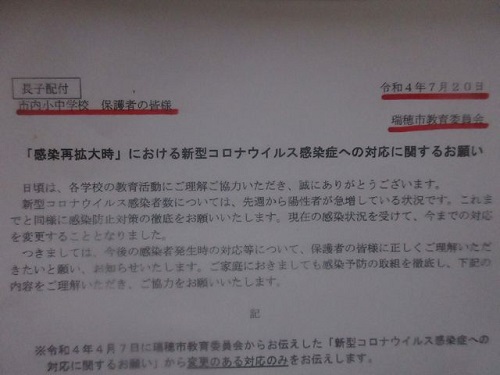 (教育長名でホームページ声明発表&全保護者に通知文書配布)⇒