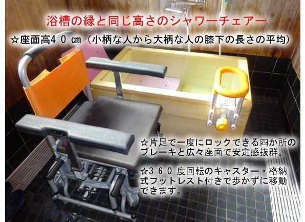 介護施設によくあるシャワーチェアーは、実は幅がせまく安定感がありません。