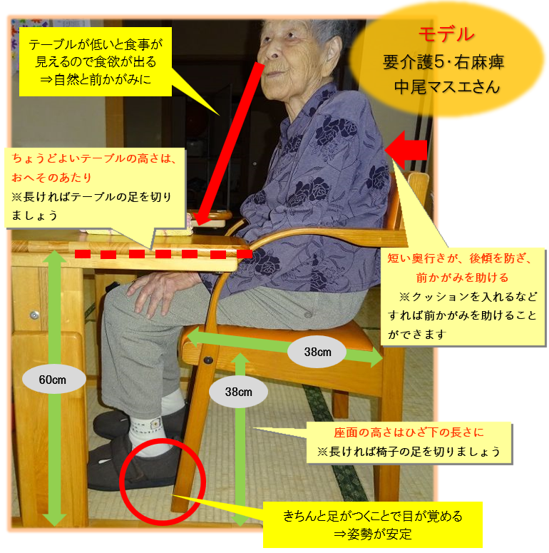 しかし、それ以上に大切な福祉用具は体形に合った椅子とテーブルです。