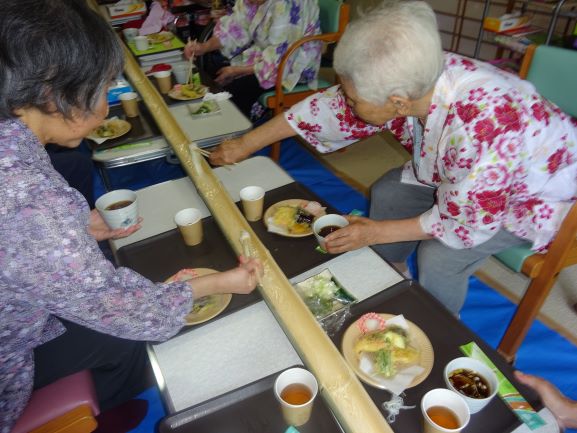 流しそうめん…『本物の竹を使用する』、