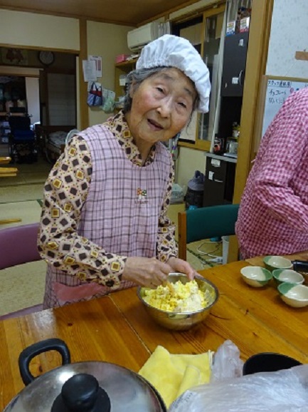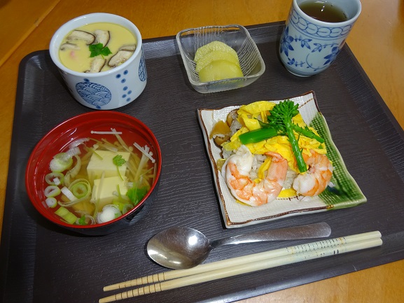 毎月の誕生会では、誕生日の方のリクエストを聞いて作ったり、リクエストがない方は、代表手作りの「絶品?ちらし寿司」と「茶碗蒸し」を召し上がって頂いています。