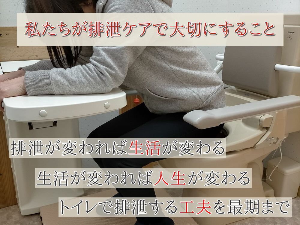 私たちは、排泄ケアとはオムツ交換ではなくトイレにつれていくことだと考えます。